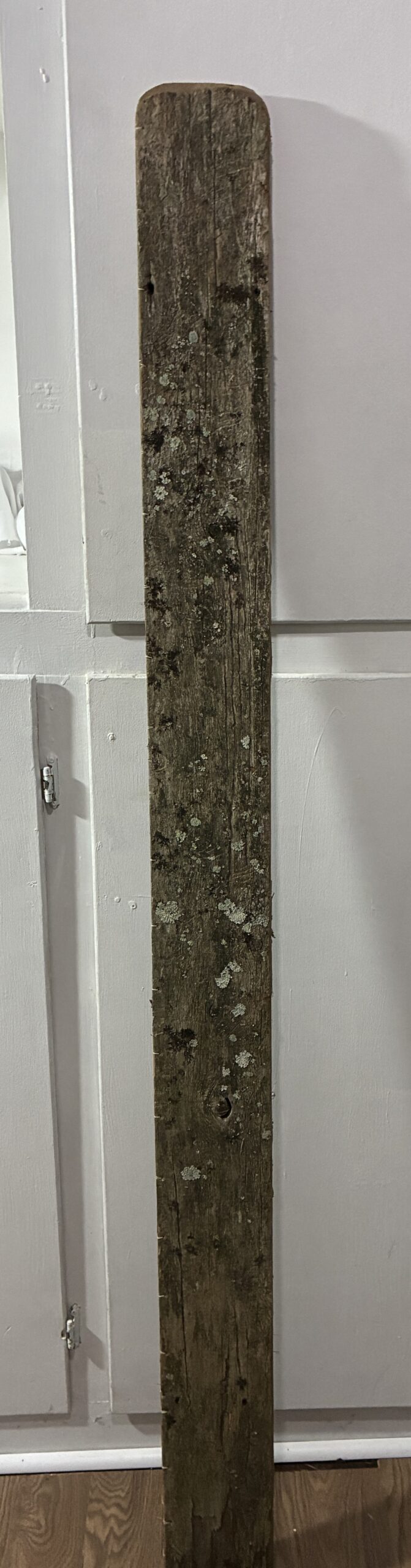 Did I sew together two almost-6-foot tall old fence boards by hand with embroidery floss?